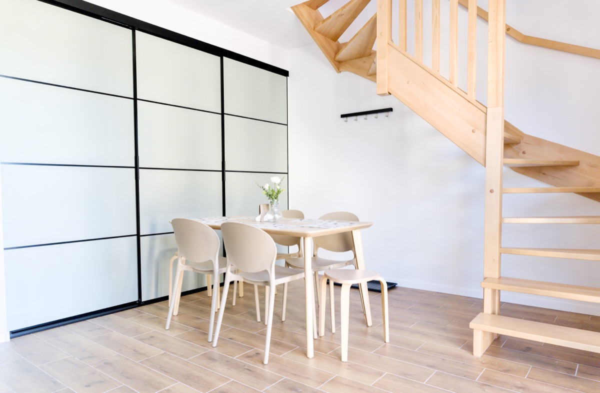 Dwupoziomowy apartament typu Suite dla 6 gości, z aneksem kuchennym, prywatną łazienką i tarasem.