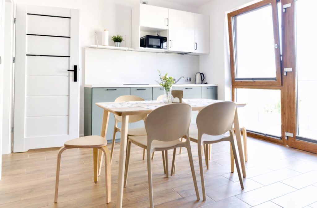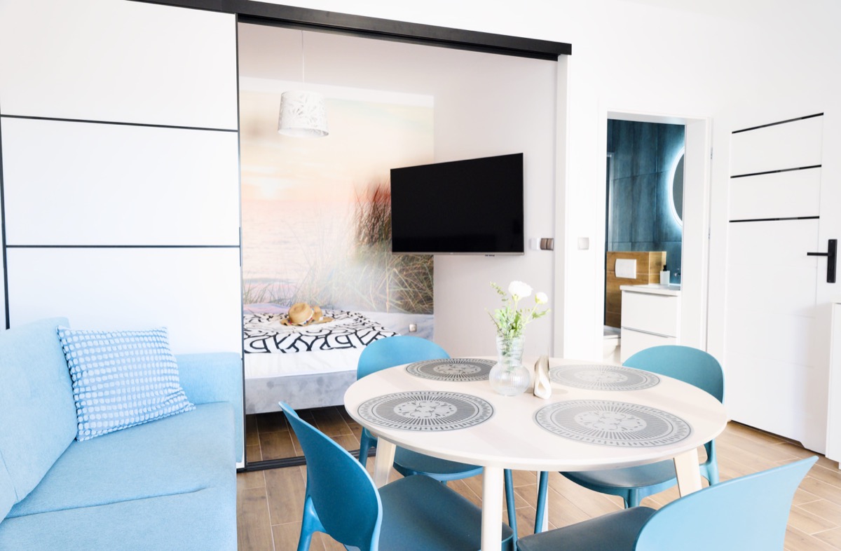 Apartament Deluxe dla 4 gości, z aneksem kuchennym i prywatną łazienką.