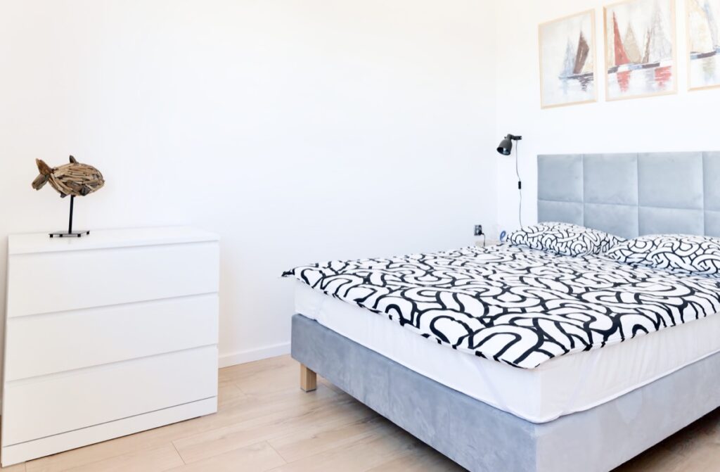 Dla Twojego komfortu, w każdym apartamencie, oddzieliliśmy część sypialną z podwójnym łóżkiem, przesuwnymi drzwiami.